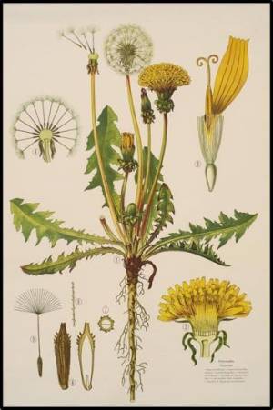 This herb literally grows all around the world. It is a perennial with a deep tap root and a floret of leaves oblanceolate to obovate, edged with jagged margins and a pinkish red stem at the lase of leaf. A single purplish stem produces a yellow corolla flower which becomes a white seed pappus, each seed having a orb-like head. It produces a milky latex.